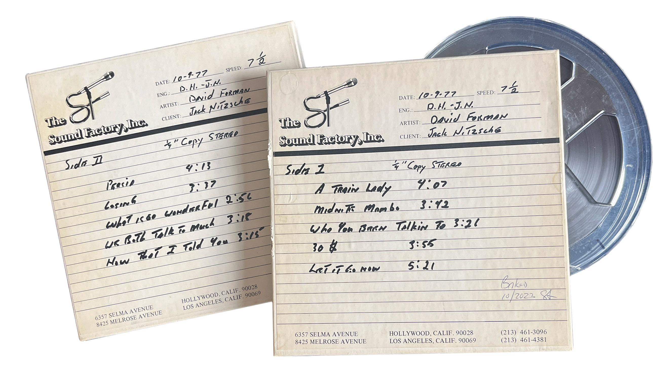 Nearly five decades later, fate seems to be intervening, willing the album back into existence. Not long after we started the project of reviving this album, Jack Nitzsche’s son, Jack Jr., was clearing out his late father’s archive in Los Angeles and happened upon two tapes of Forman’s second album in the garage. They were rough mixes sequenced by Nitzsche himself. Jack Jr. mailed the tapes to Forman to use. It was these tapes that High Moon Records used as source material for the album we have titled Who You Been Talking To. (The exception is “Painted in a Corner,” which came from the Hal Willner tapes and was originally mastered by Dave Darlington.)